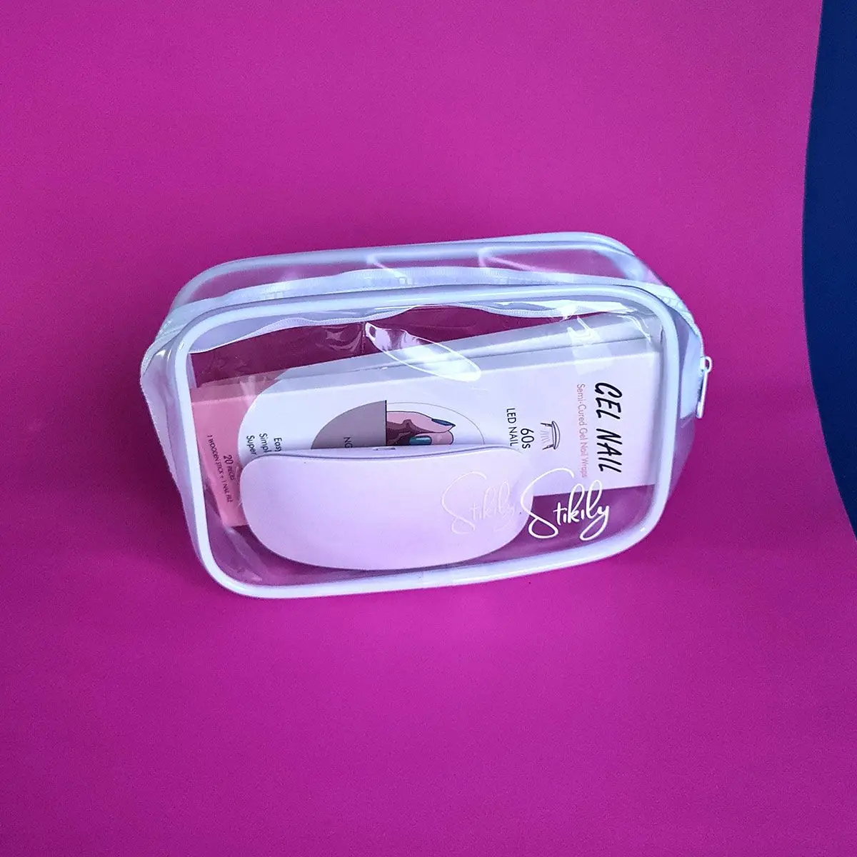 Stikilyn kosmetiikkalaukku on ihanteellinen kynsilakkatarrojen säilyttämiseen. Läpinäkyvän kosmetiikkalaukun mitat ovat 18 x 5,5 x 12 cm – riittävän suuri, että sinne mahtuu kaikki tarpeellinen ja tarpeeksi pieni, jotta se ei vie liikaa tilaa. Kestävä kosmetiikkalaukku on valmistettu PVC-muovista, minkä ansiosta se on ja veden- ja rasvankestävä sekä sisä- että ulkopuolelta. Vaikka läpinäkyvä kosmetiikkalaukku on suunniteltu kynsilakkatarrojesi säilyttämiseen, sillä on monia muitakin käytännöllisiä käyttötarkoituksia. Se sopii esimerkiksi ihanteellisesti pienten kosmetiikkapurkkien kuljettamiseen käsimatkatavaroissa.