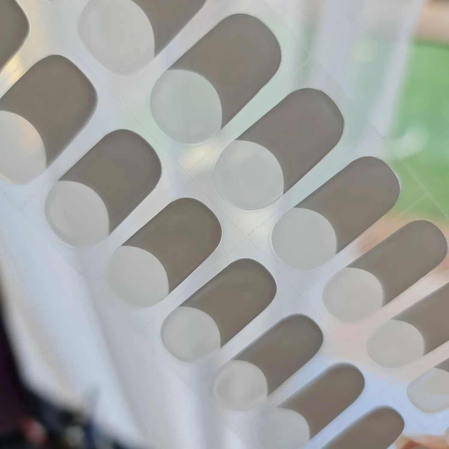- Geelitarrat on pakattu läpinäkymättömään kalvoon, johon ne laitetaan takaisin käytön jälkeen. Näin geelitarrat säilyvät hyvin ja voit käyttää niitä ajan myötä.